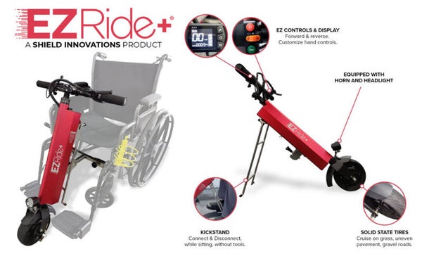 This innovative mobility aid seamlessly integrates power assistance into most manual wheelchairs, empowering users with independent mobility like never before. Unlike traditional power mobility scooters, the EZ Ride+ offers a lightweight and portable solution at a fraction of the cost of existing power attachments, scooters, and power chairs.